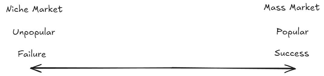 When we put it this way, going from Niche Market to Unpopular is where the disconnect happens but in the absence of an alternative being “not Mass Market” leaves failure as the only option. But we can work with this since popularity can be measured by sales volume but be creative to find an analog in your application lens.